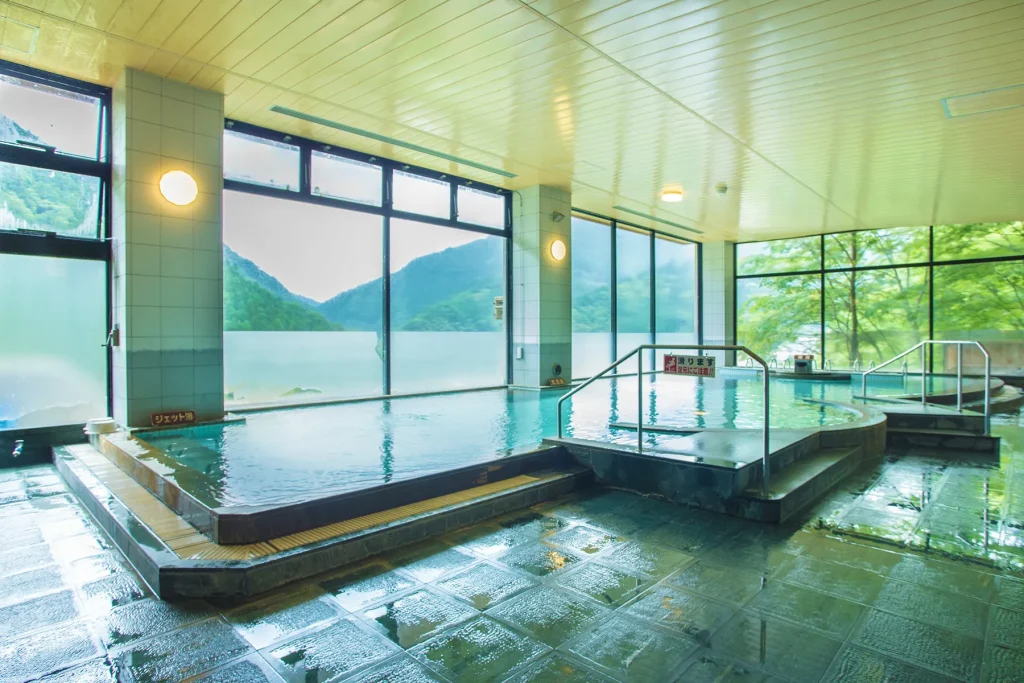 男性大浴場「花唄湯」(内湯・露天風呂・脱衣所・洗面台) / 女性大浴場「小唄湯」(内湯・露天風呂・脱衣所・洗面台)